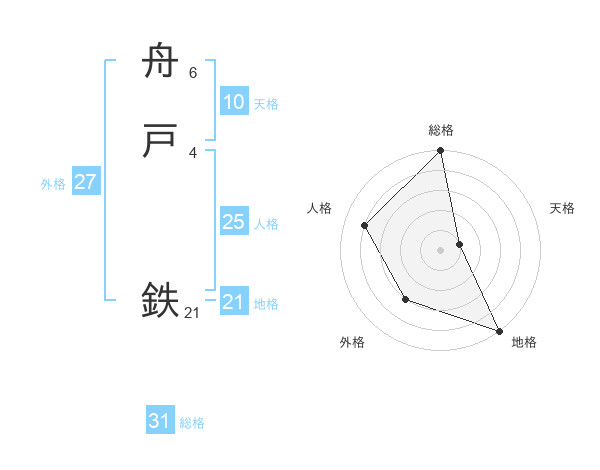 舟戸 鉄さんの総格は31画の5点!