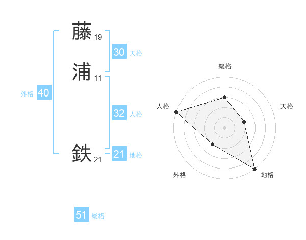 藤浦 鉄さんの総格は51画の3点!
