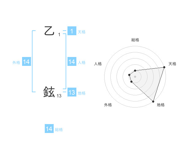 乙 鉉さんの総格は14画の1点!