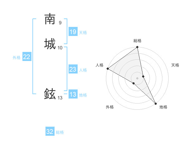 南城 鉉さんの総格は32画の5点!
