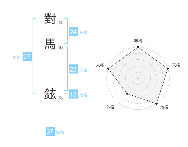 對馬 鉉さんの総格は37画の5点!