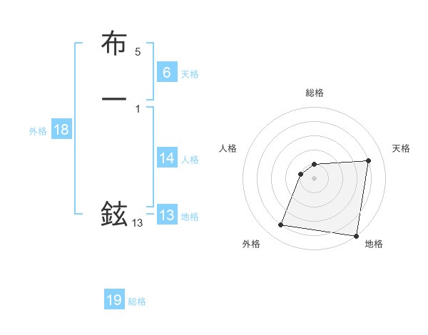 布一 鉉さんの地格は13画の5点!