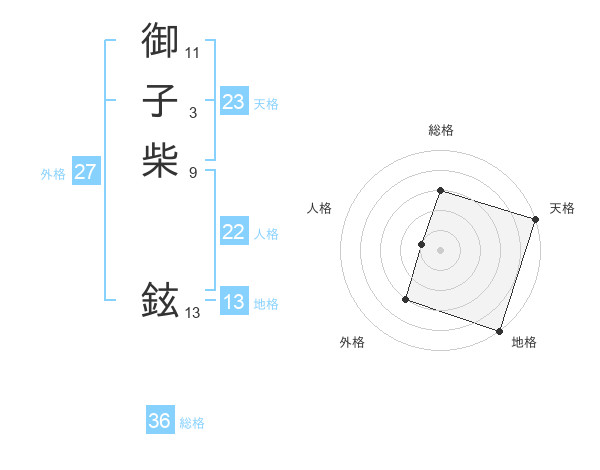 御子柴 鉉さんの天格は23画の5点!