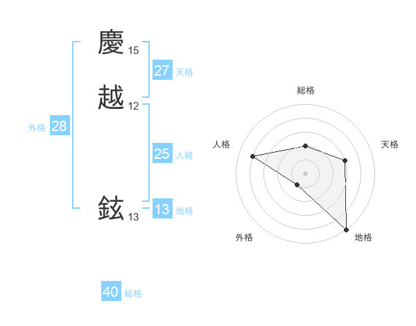 慶越 鉉さんの外格は28画の1点!