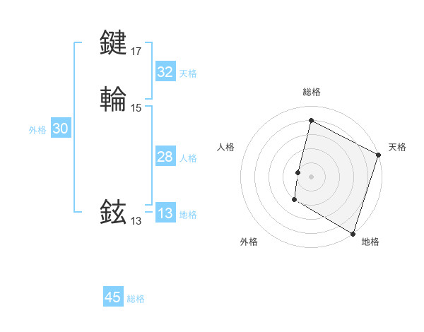 鍵輪 鉉さんを姓名の画数から五運を鑑定