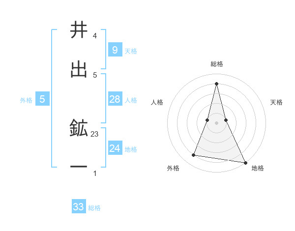 井出 鉱一さんの総格は33画の4点!