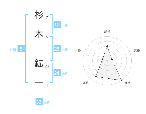 杉本 鉱一さんの地格は24画の5点!