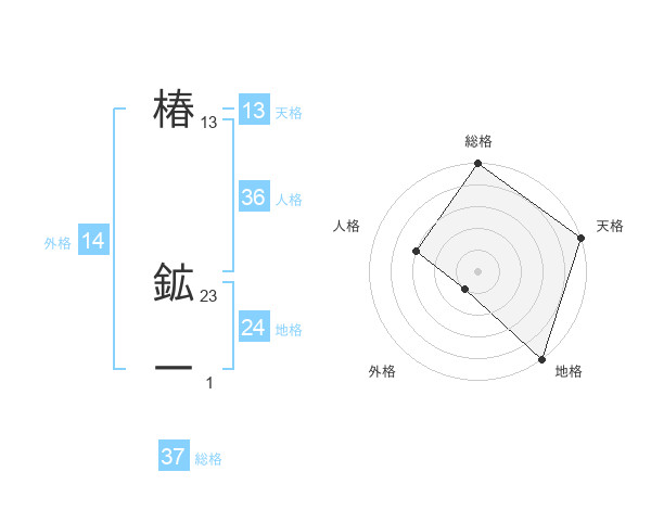 椿 鉱一さんの総格は37画の5点!