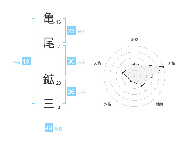 亀尾 鉱三さんの総格は49画の2点!