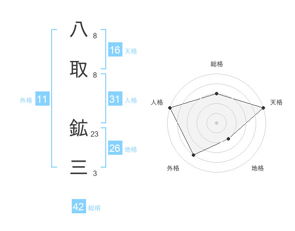 八取 鉱三さんを姓名の画数から五運を鑑定