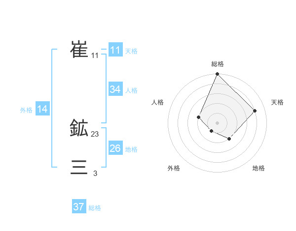 崔 鉱三さんを姓名の画数から五運を鑑定