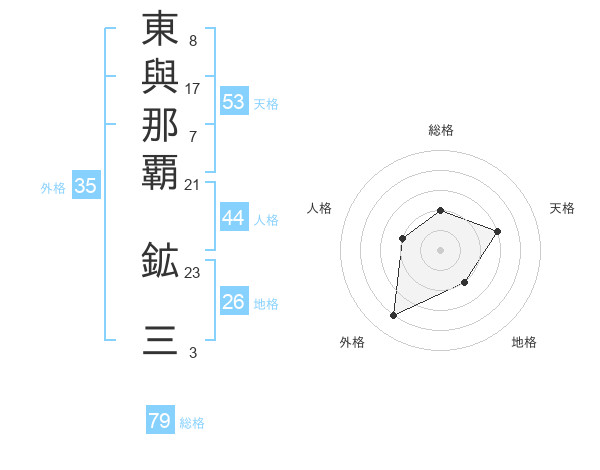 東與那覇 鉱三さんを姓名の画数から五運を鑑定