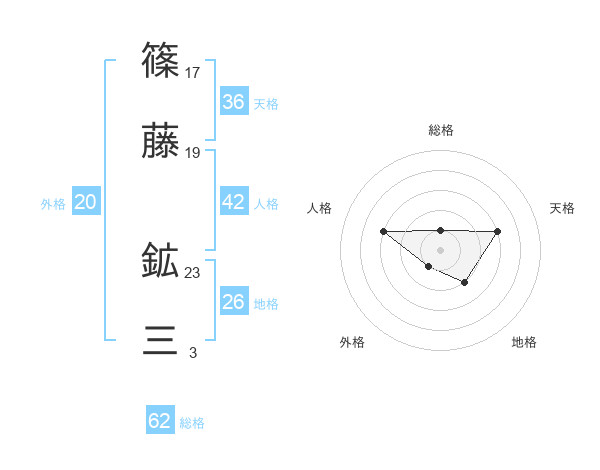 篠藤 鉱三さんを姓名の画数から五運を鑑定