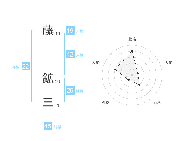 藤 鉱三さんの総格は45画の4点!