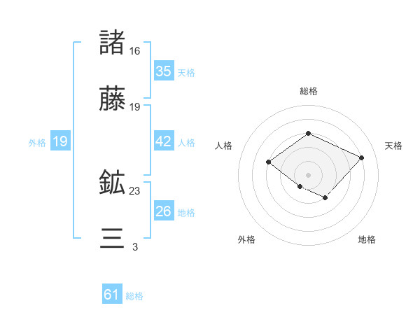 諸藤 鉱三さんを姓名の画数から五運を鑑定