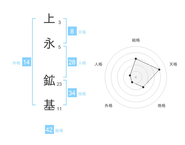上永 鉱基さんの天格は8画の4点!