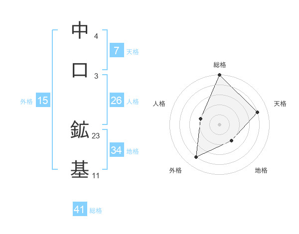 中口 鉱基さんを姓名の画数から五運を鑑定