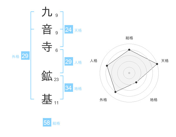 九音寺 鉱基さんの総格は58画の4点!