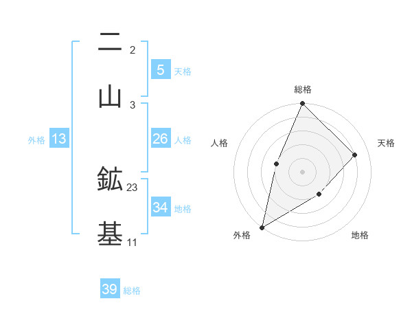 二山 鉱基さんの総格は39画の5点!