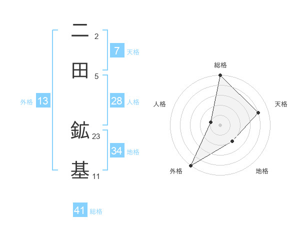 二田 鉱基さんの総格は41画の5点!
