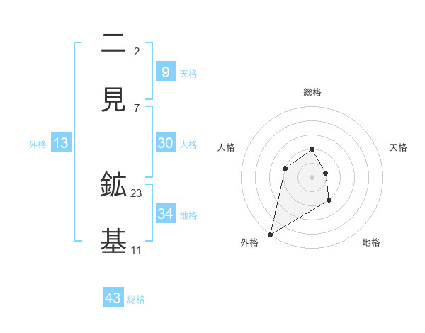 二見 鉱基さんの外格は13画の5点!