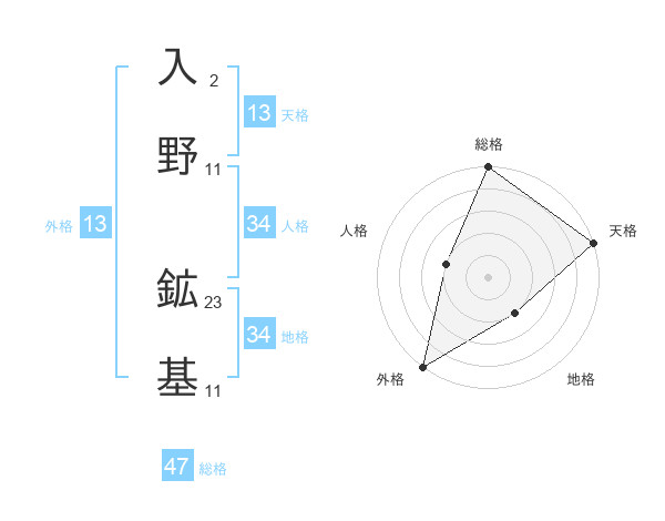 入野 鉱基さんを姓名の画数から五運を鑑定