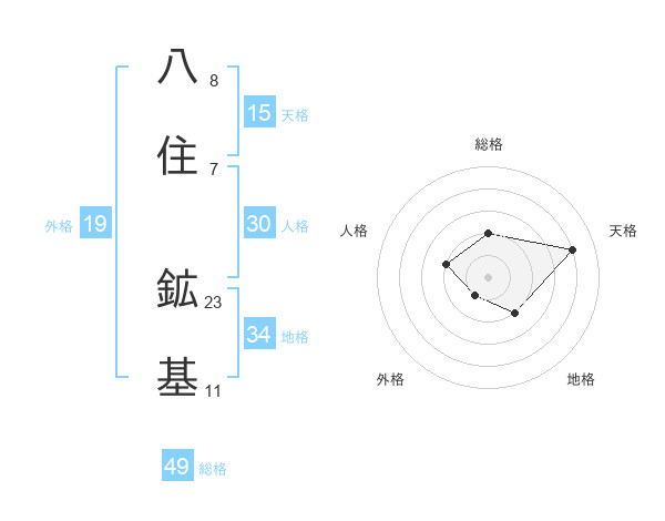 八住 鉱基さんの総格は49画の2点!