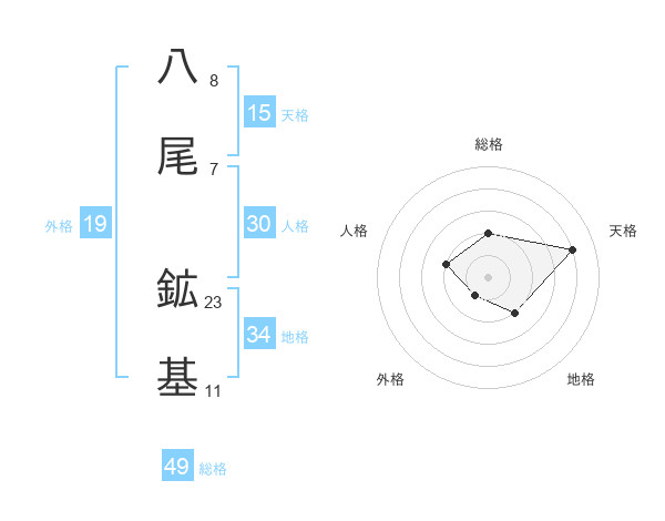 八尾 鉱基さんの総格は49画の2点!