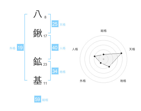 八鍬 鉱基さんの天格は25画の4点!