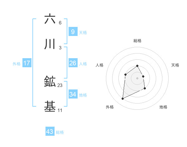 六川 鉱基さんの外格は17画の4点!