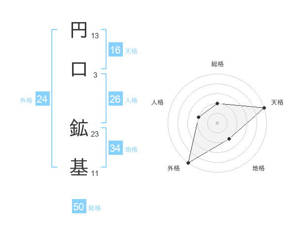 円口 鉱基さんを姓名の画数から五運を鑑定