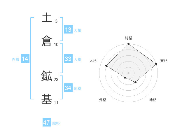 土倉 鉱基さんを姓名の画数から五運を鑑定