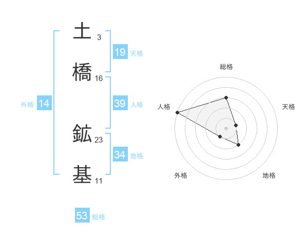 土橋 鉱基さんを姓名の画数から五運を鑑定