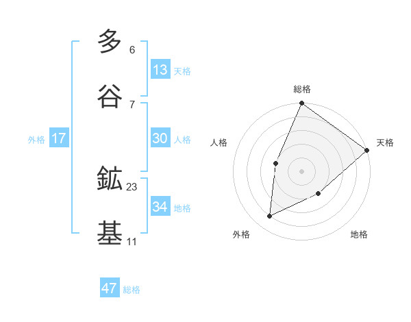多谷 鉱基さんの総格は47画の5点!