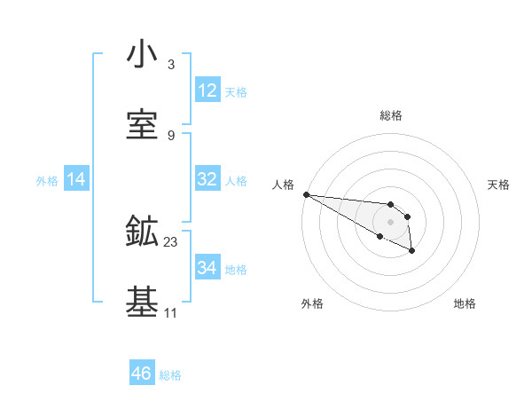 小室 鉱基さんの総格は46画の1点!