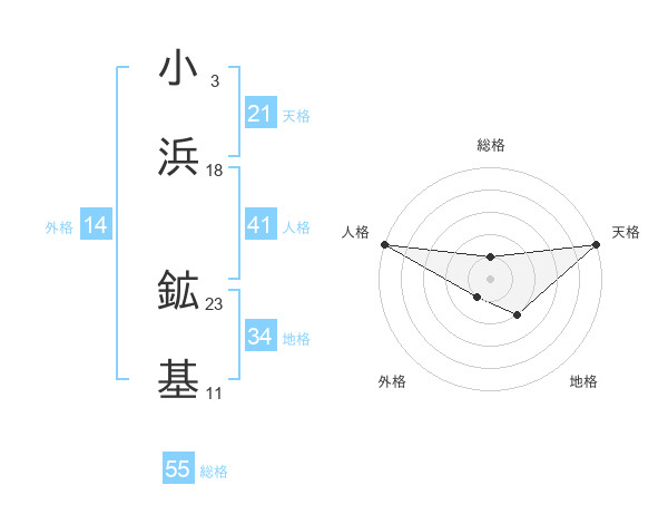 小浜 鉱基さんの天格は21画の5点!