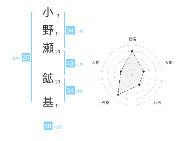 小野瀬 鉱基さんを姓名の画数から五運を鑑定