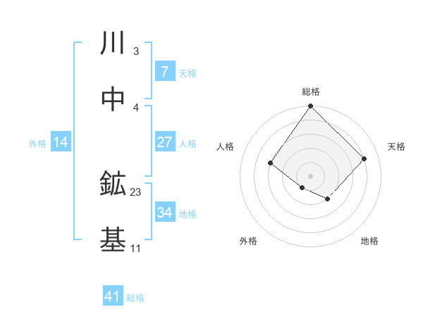 川中 鉱基さんの総格は41画の5点!