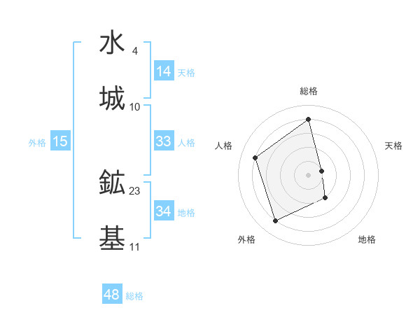 水城 鉱基さんの総格は48画の4点!
