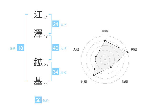 江澤 鉱基さんの総格は58画の4点!