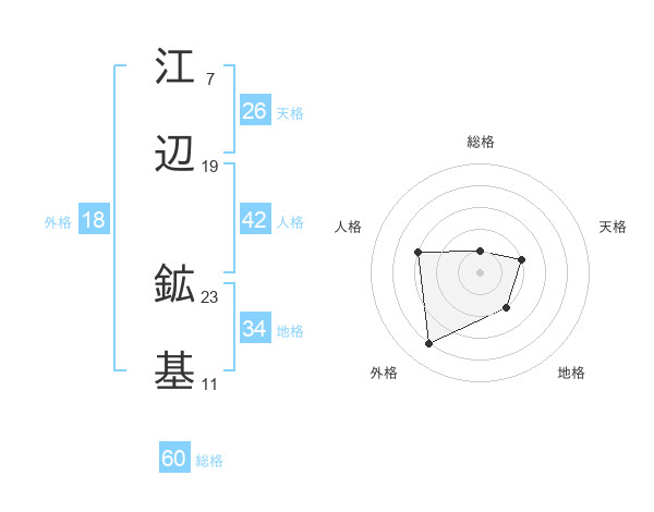 江辺 鉱基さんの総格は60画の1点!
