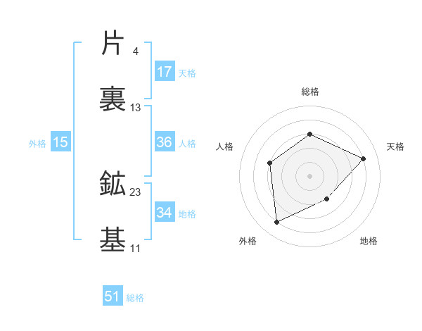片裏 鉱基さんの天格は17画の4点!