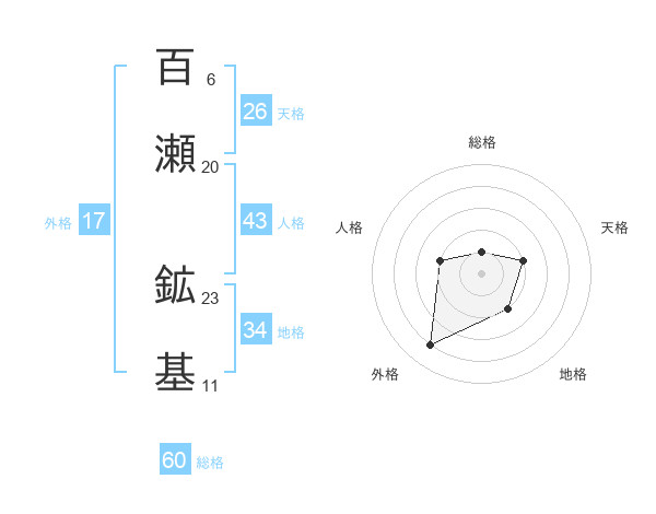 百瀬 鉱基さんを姓名の画数から五運を鑑定