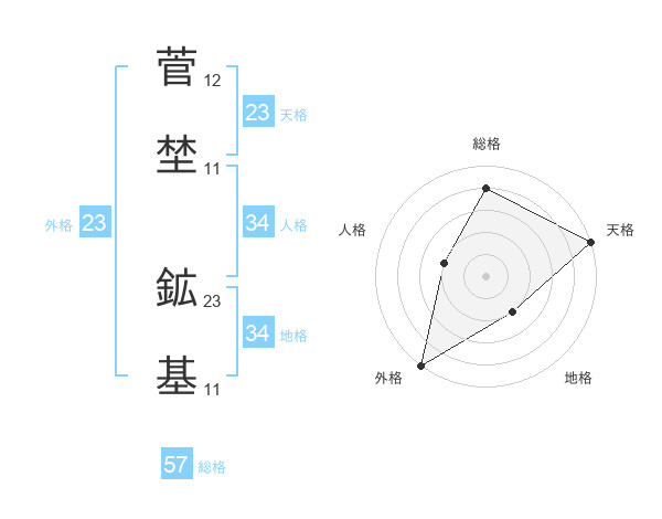 菅埜 鉱基さんの総格は57画の4点!