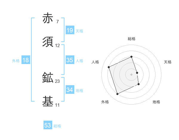 赤須 鉱基さんを姓名の画数から五運を鑑定
