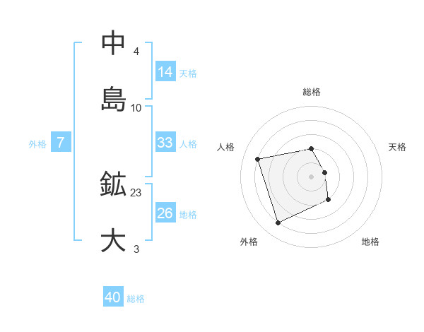 中島 鉱大さんを姓名の画数から五運を鑑定