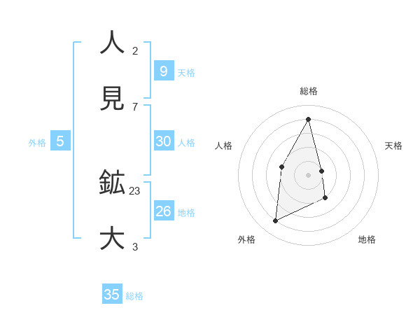 人見 鉱大さんを姓名の画数から五運を鑑定
