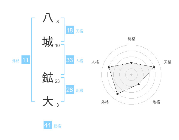 八城 鉱大さんの総格は44画の2点!