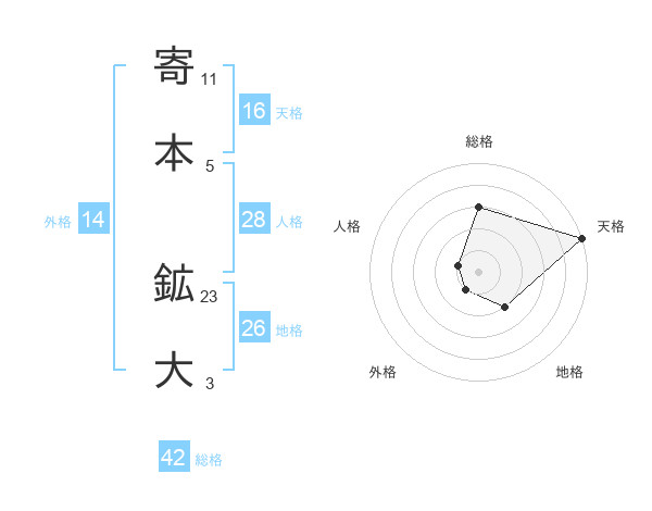 寄本 鉱大さんを姓名の画数から五運を鑑定