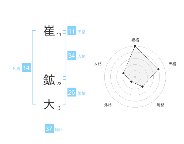 崔 鉱大さんを姓名の画数から五運を鑑定